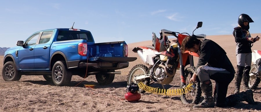 Charge your phone or laptop with the available in-bed outlet. Standard on XLT, LARIAT and Ranger® Raptor®.